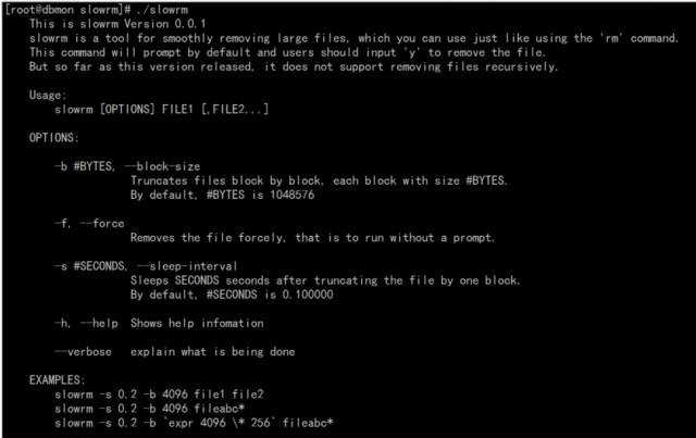 直接输入slowrm,或输入slowrm –h或slowrm —help可以查看帮助。